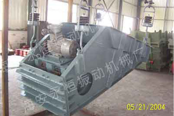 自同步慣性振動(dòng)給料機(jī)是由給料槽體、激振器、彈簧支座、傳動(dòng)裝置等組成。