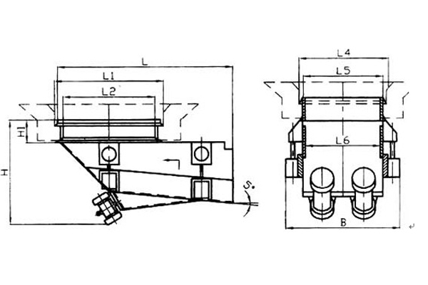慣性振動給煤機由機架、底板(給煤槽)、傳動平臺、漏斗、閘門、托輥等組成。當(dāng)電機開動后經(jīng)彈性聯(lián)軸器、減速機、曲柄連桿機構(gòu)拖動傾料5°的底板在輥上作直線往復(fù)運動,煤均勻地卸到其他設(shè)備上。